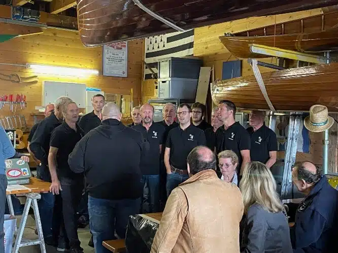 Samedi 1er novembre a eu lieu dans le hangar à bateaux de la Nana la journée de soutien à la chorale des Pirates d’Ouchy. Fondée il y a un peu plus de 20 ans, cette chorale a eu des hauts et des bas en fonction des différents chefs de chœur qui se sont succédé. Interrompue durant la période Covid, la chorale a repris ses activités sous la direction d’un nouveau directeur en la personne d’Eddy Gaspoz. Chef de chœur réputé et reconnu jusqu’au Brassus, Eddy est directeur de nombreux chœurs d’hommes, dont l’Echo de la Risaz à Grancy. Une délégation de cette excellente phalange a fait le déplacement à Ouchy pour animer la journée, en compagnie des productions de la chorale locale. Sous la direction d’Eddy, la chorale des Pirates s’est étoffée pour atteindre environ 25 chanteurs et a beaucoup progressé grâce à la rigueur, à l’entrain et aux qualités professionnelles et humaines de son nouveau patron.