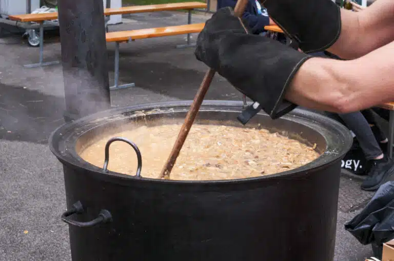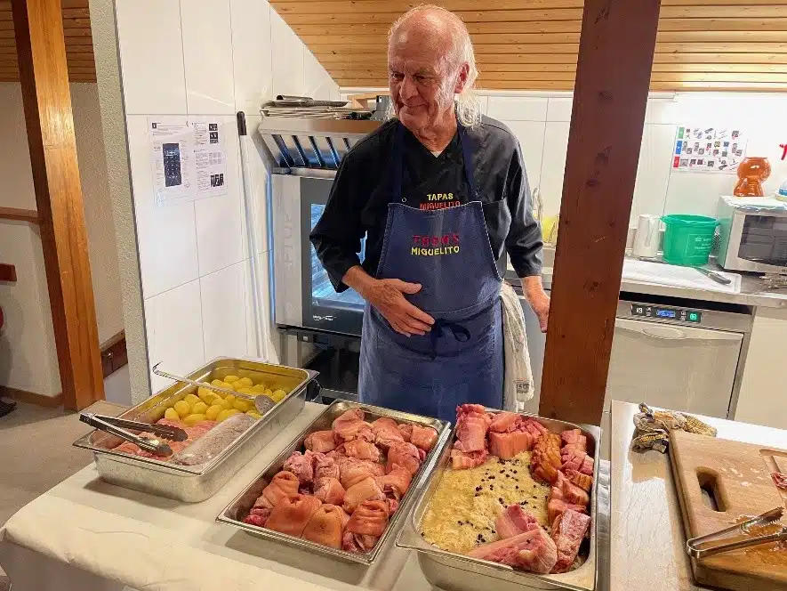 Hier soir vendredi 26 septembre a eu lieu la soirée choucroute. Avec une météo pluvieuse et fraîche à l’extérieur, les quelque 23 convives ont dégusté dans une ambiance chaleureuse l’excellente choucroute copieusement garnie préparée par Michel Schaub. Le repas s’est achevé avec un dessert glacé et meringué aux parfums de vanille et de pêche de vigne.